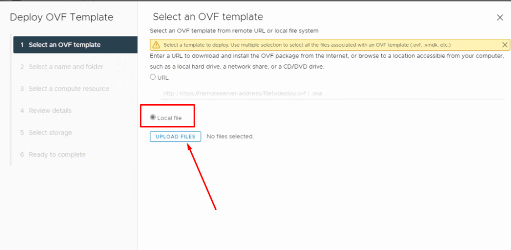 Açılan ekranda .OVF yi indirdiğimiz dizine giderek aşağıdaki görselde olduğu gibi .ovf ve .vmdk dosyalarını seçiyoruz.