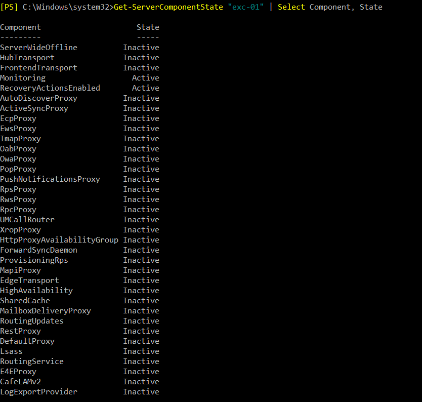 Set-ServerComponentState "exc-01" -Component ServerWideOffline -State Active -Requester Maintenance
