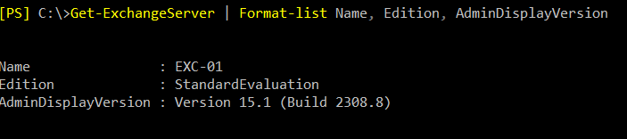 Get-ExchangeServer | Format-list Name, Edition, AdminDisplayVersion