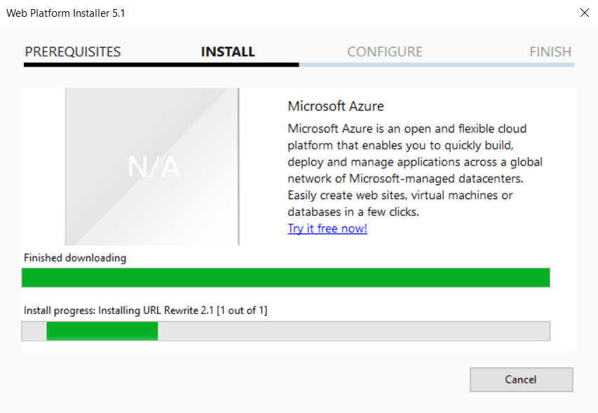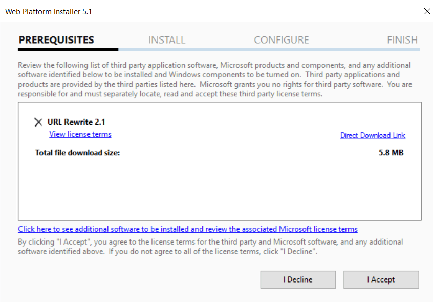 Burada en çok dikkat edeceğimiz nokta bizden bir IIS eklentisi yüklememiz gerektiğini söylemesidir.