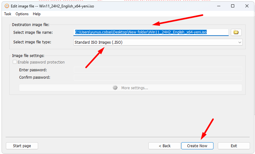 En sonda “Create Now” butonuna basarak yeni ISO muzu oluşturuyoruz.