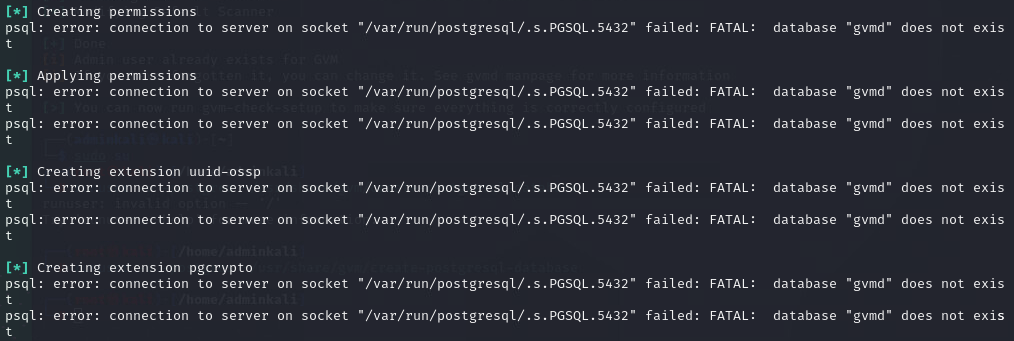 Sırf bu yüzden OpenVas için yeni bir DB oluşturamıyoruz.