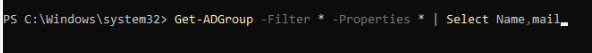 Get-ADGroup -Filter * -Properties * | Select Name,mail
