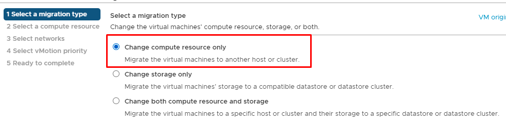 Daha sonra migrate işlemini yapacağımız sihirbaz karşımıza çıkıyor. Buradan ne yapmak istediğimizi seçiyoruz. Storage harici diğer kaynakları (Ram, cpu) değiştirmeye ihtiyacınız varsa ilk seçenekten ilerliyoruz.