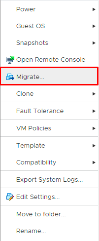 Taşımak istediğimiz hostun üzerine sağ tıklıyoruz. Açılan menüden “Migrate” seçeneğini tıklıyoruz.