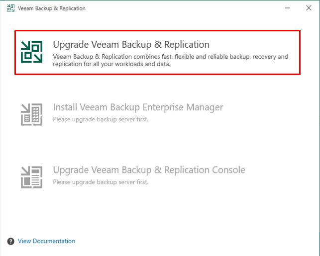 Upgrade butonuna bastıktan sonra “Upgrade Veeam Backup & Replication” seçeneğine tıklayıp devam ediyoruz.