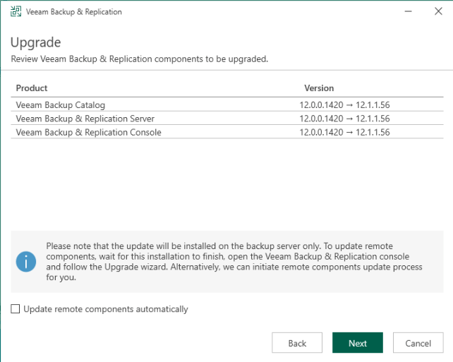 Açılan bu ekranda ayrıca “Update remote components automatically” kutucuğunu işaretlersek uzakta çalışan tüm agent ve benzeri uygulamalarımızı da kontrol ederek upgrade etmesini sağlayabiliyoruz.
