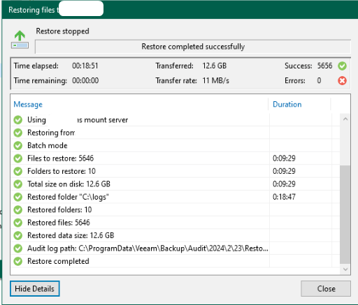 Bazen Guest file çalışmıyor ve hata veriyor. Hata verdiğinde gerekirse Veeam sunucunuzu restart edin düzelecektir.