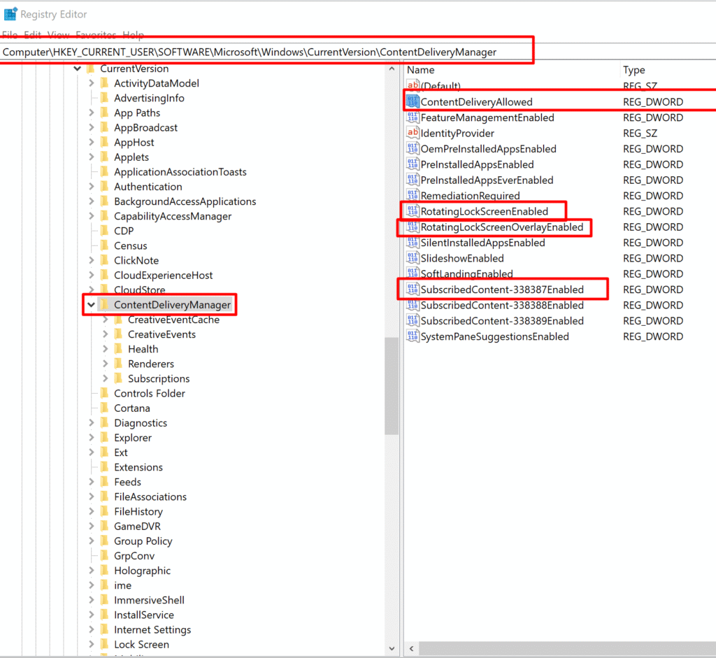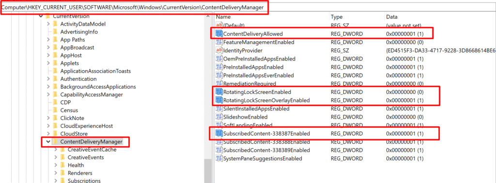 HKEY_CURRENT_USER\SOFTWARE\Microsoft\Windows\CurrentVersion\ContentDeliveryManager
