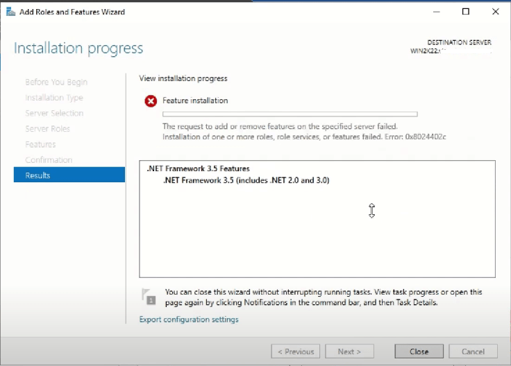 Sunucu tarafında .NET 3.5 hata verebilir. Manuel olarak yüklemek için aşağıdaki adımları takip etmeniz yeterli.